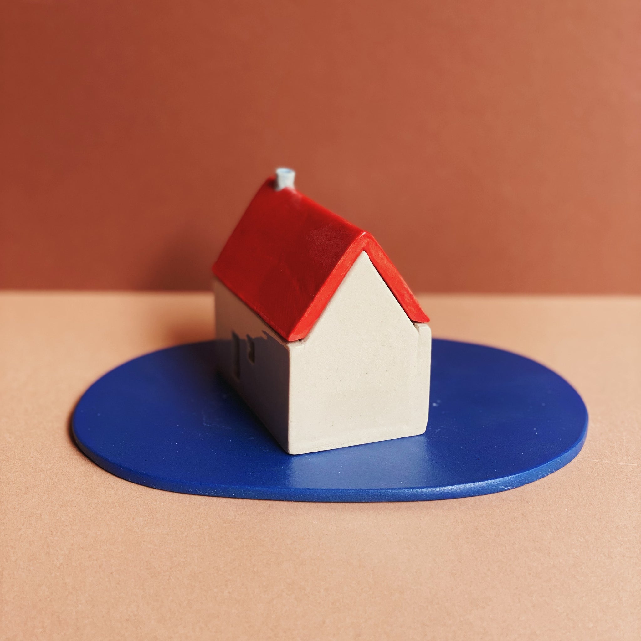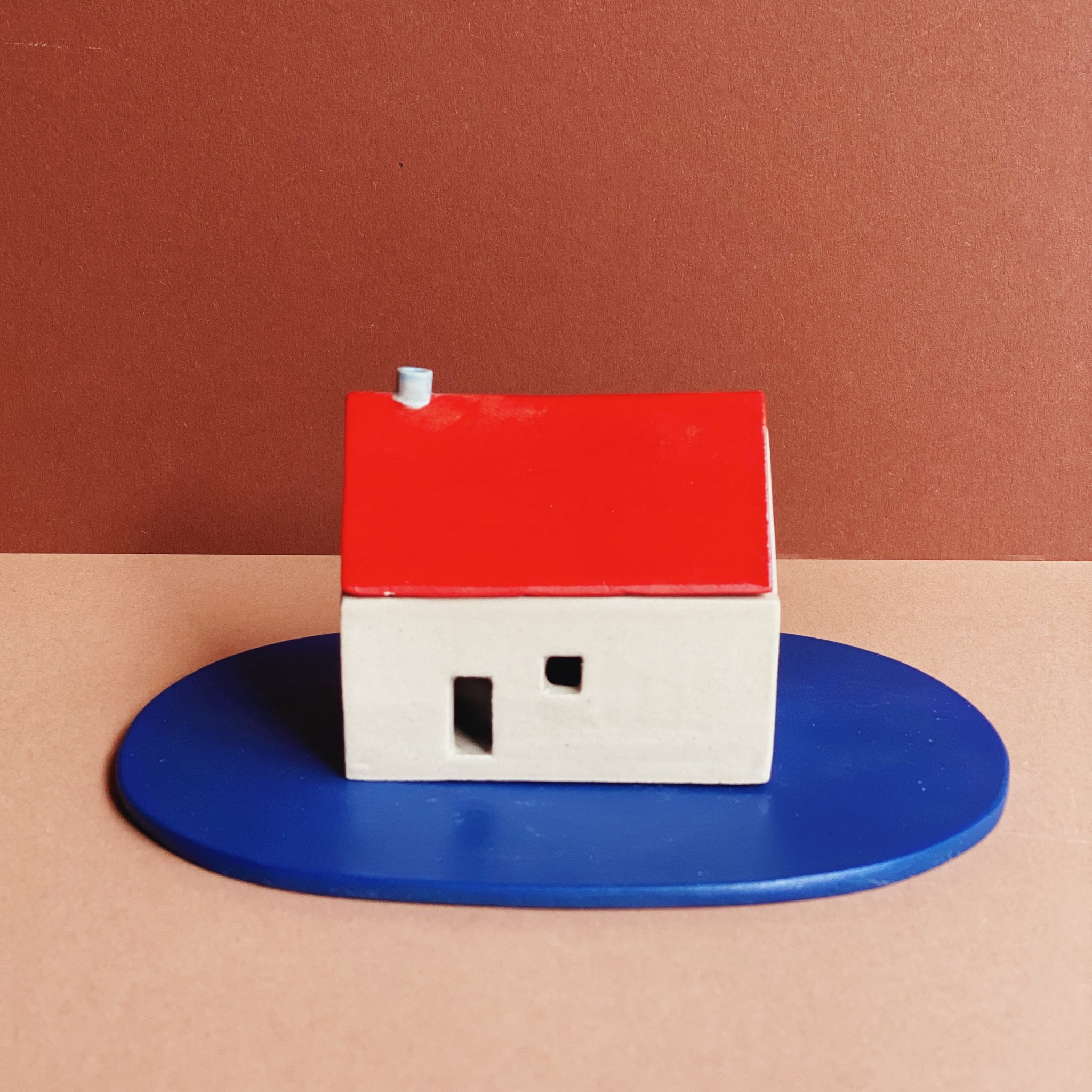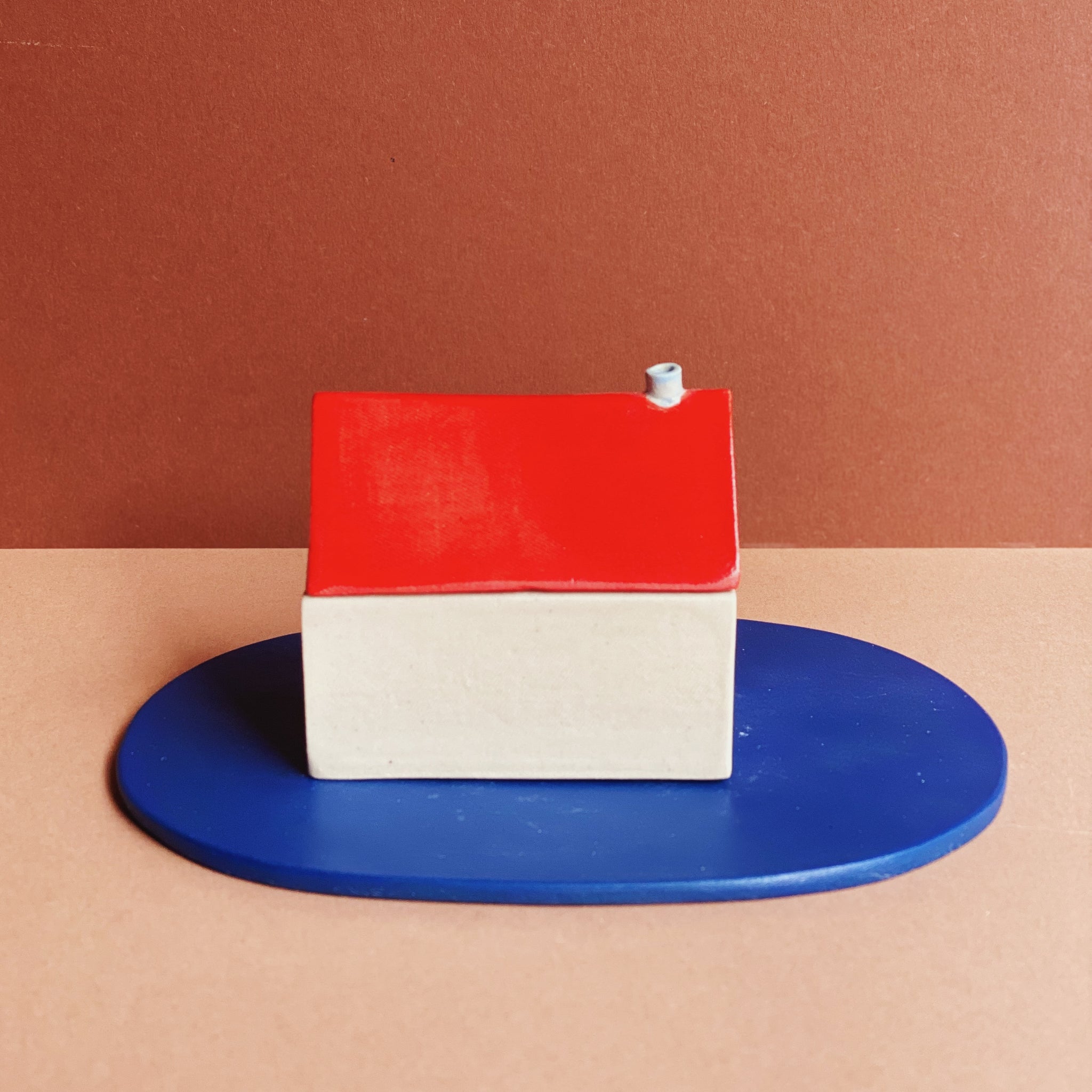 Handgefertigtes Häuschen aus Steinzeug, illustriert mit farbigen Engoben und Unterglasuren und einem Finish aus transparenter, glänzender Glasur. Jedes Häuschen wird in einem eigens dafür gestalteten Karton und einer kleinen Überraschung versendet.