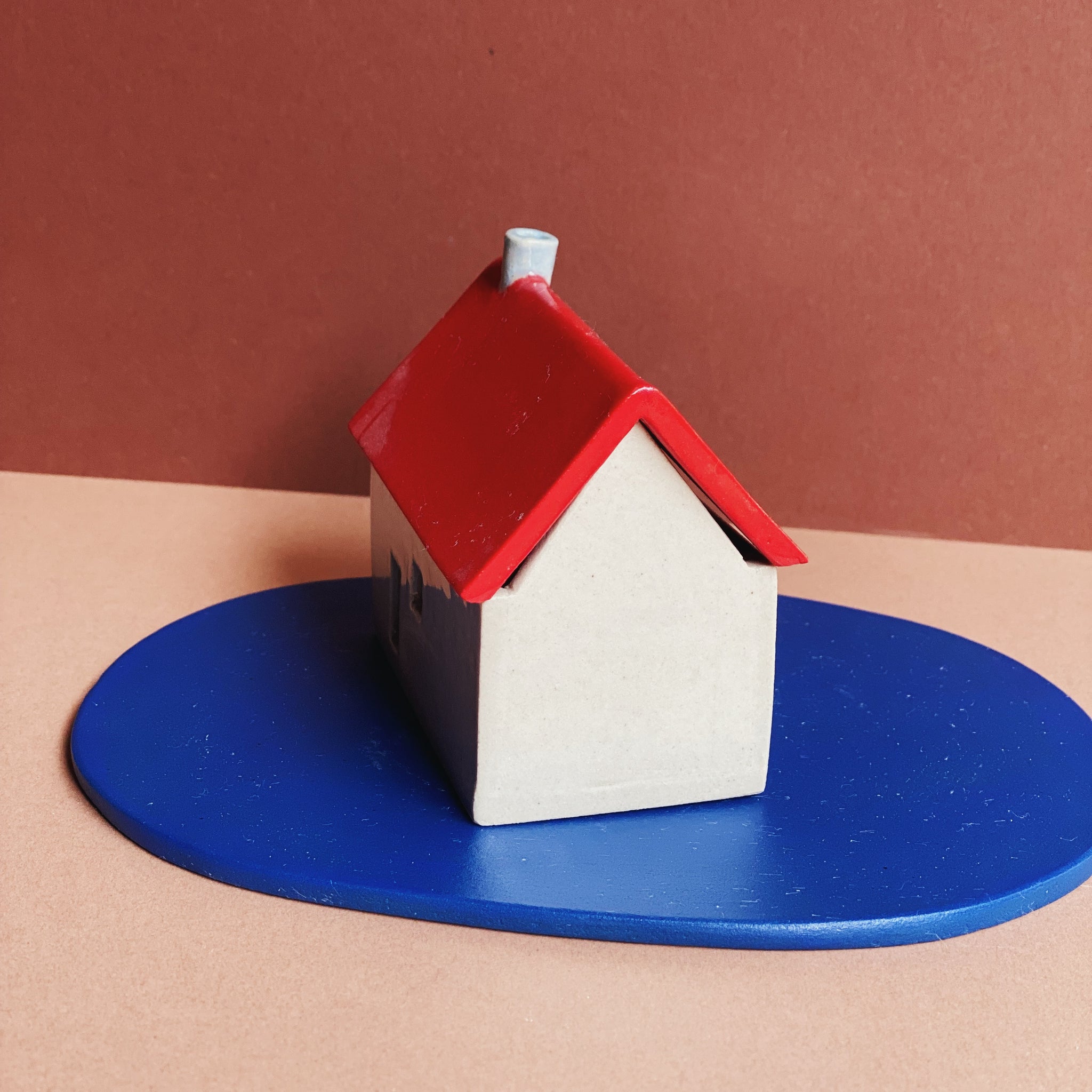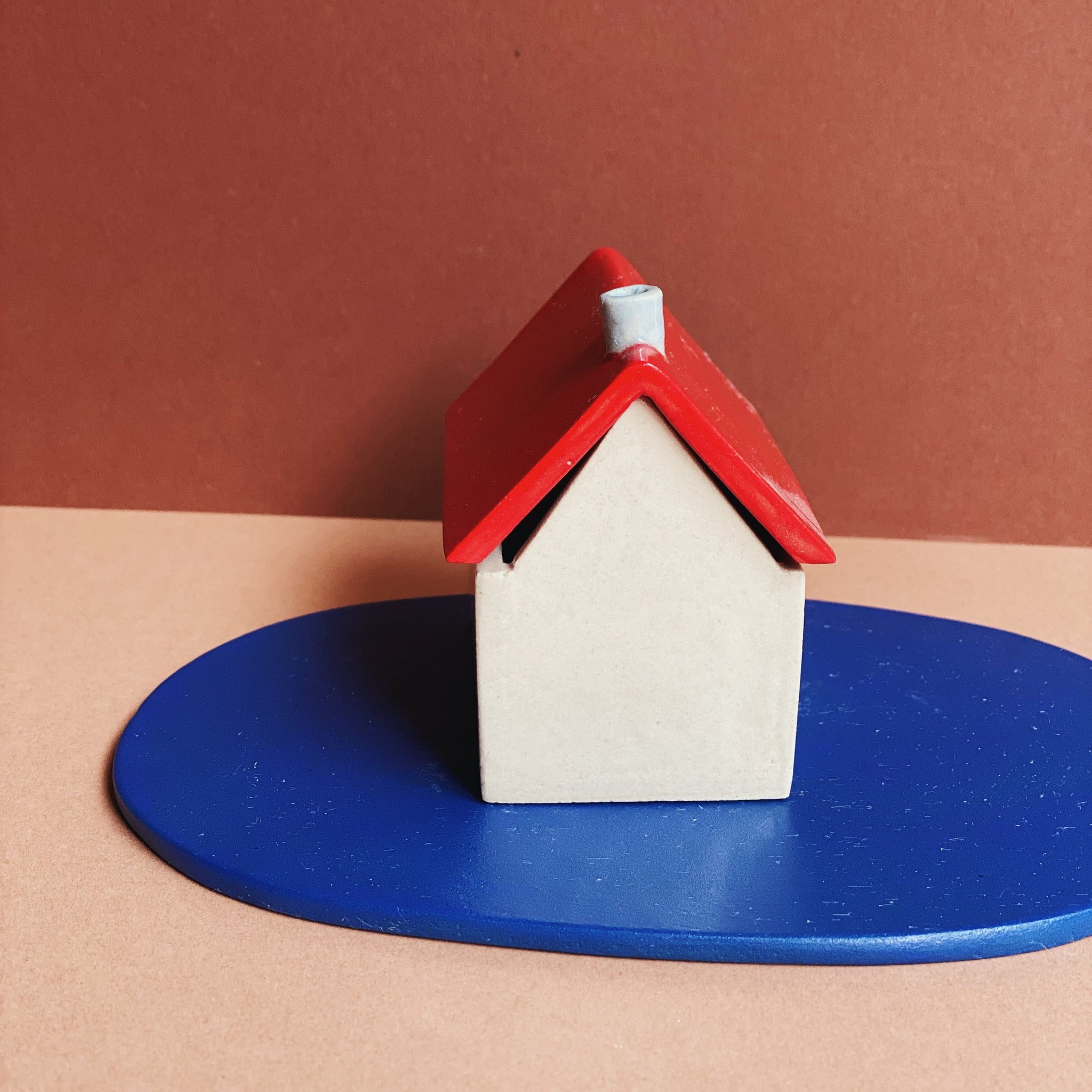 Handgefertigtes Häuschen aus Steinzeug, illustriert mit farbigen Engoben und Unterglasuren und einem Finish aus transparenter, glänzender Glasur. Jedes Häuschen wird in einem eigens dafür gestalteten Karton und einer kleinen Überraschung versendet.