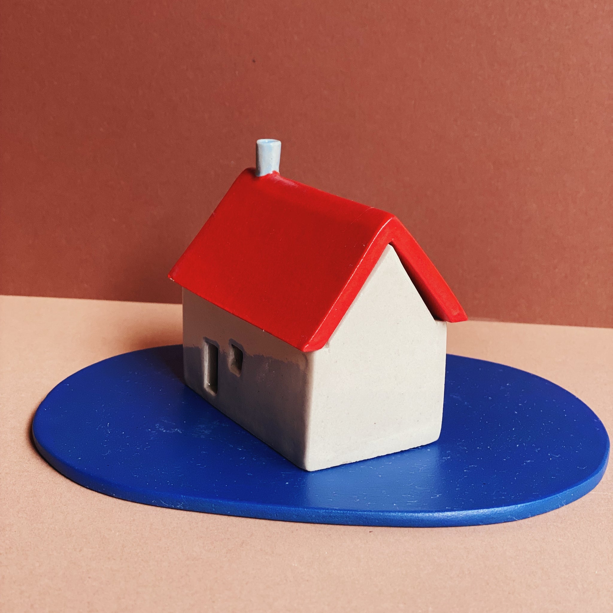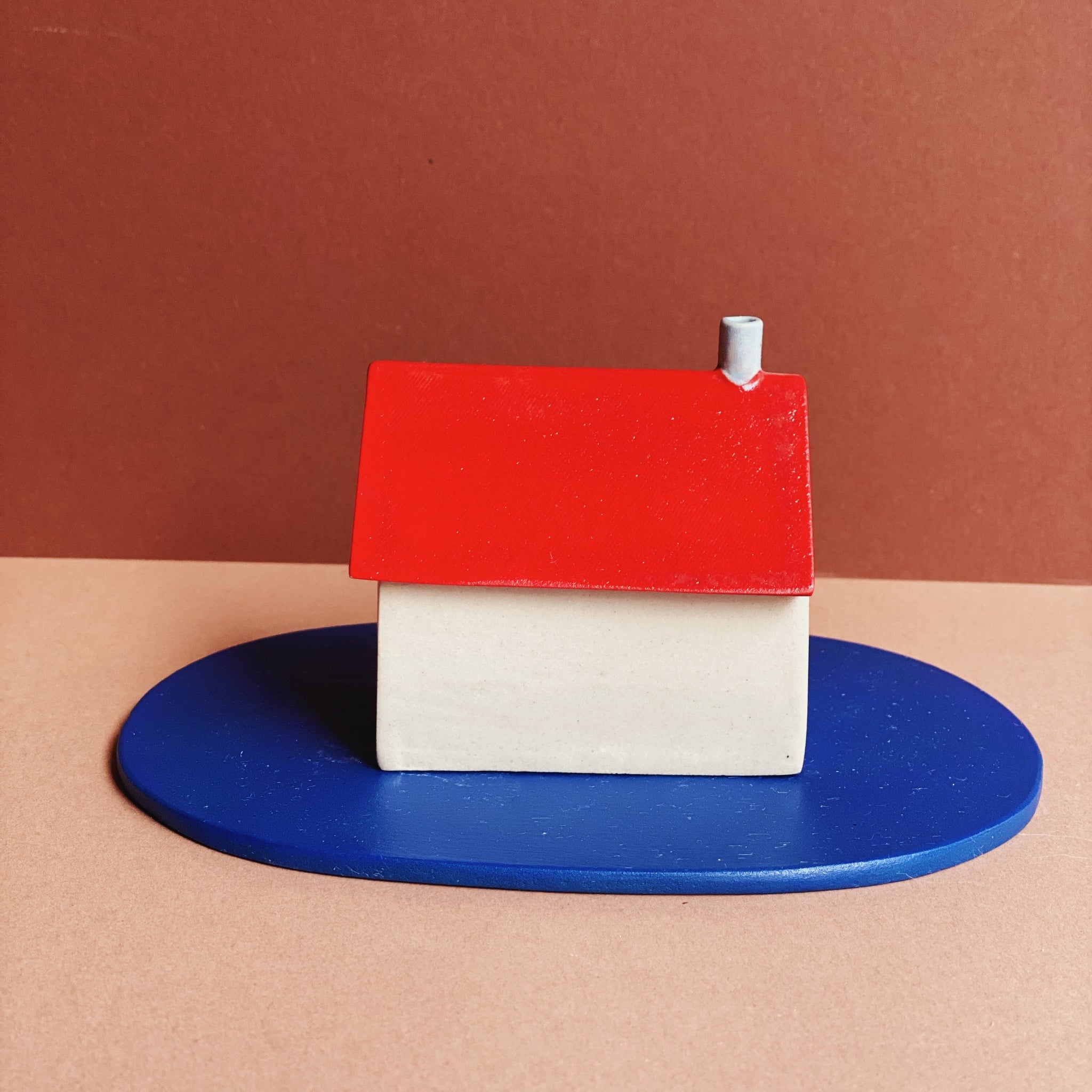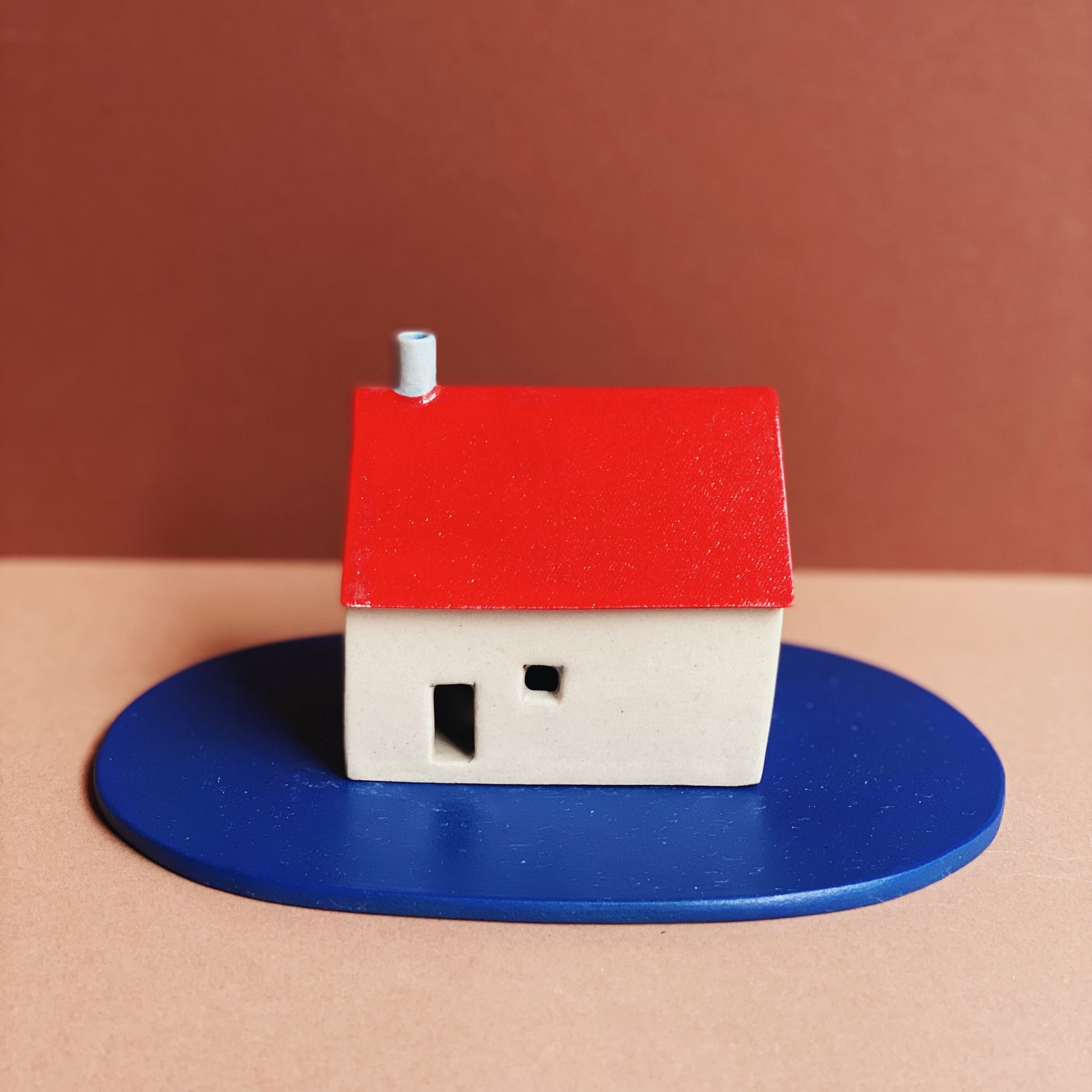 Handgefertigtes Häuschen aus Steinzeug, illustriert mit farbigen Engoben und Unterglasuren und einem Finish aus transparenter, glänzender Glasur. Jedes Häuschen wird in einem eigens dafür gestalteten Karton und einer kleinen Überraschung versendet.