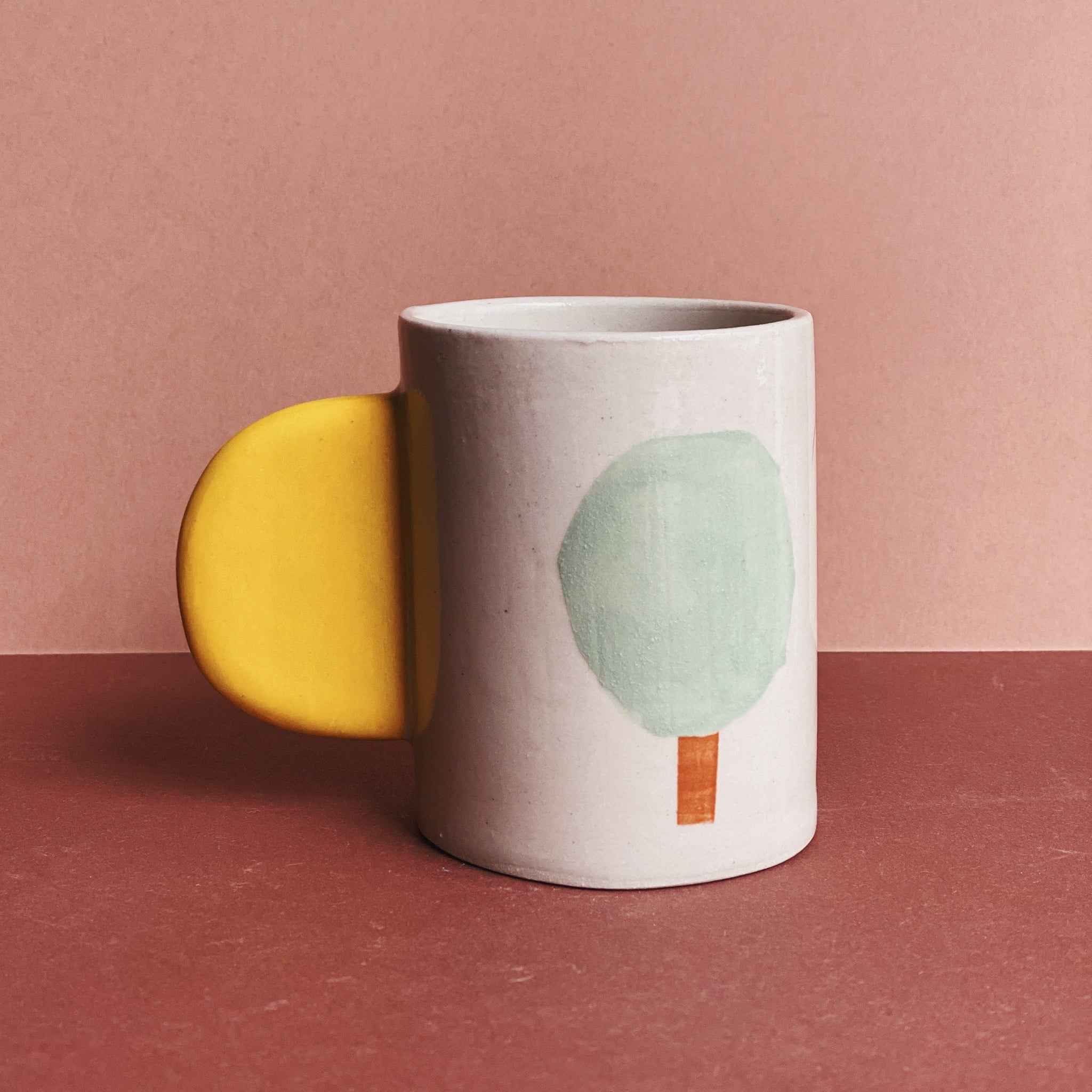 Tassen-Studie mit bunter Illustration und einem Finish aus klarer Glasur. Gebrannt bei 1240 Grad.