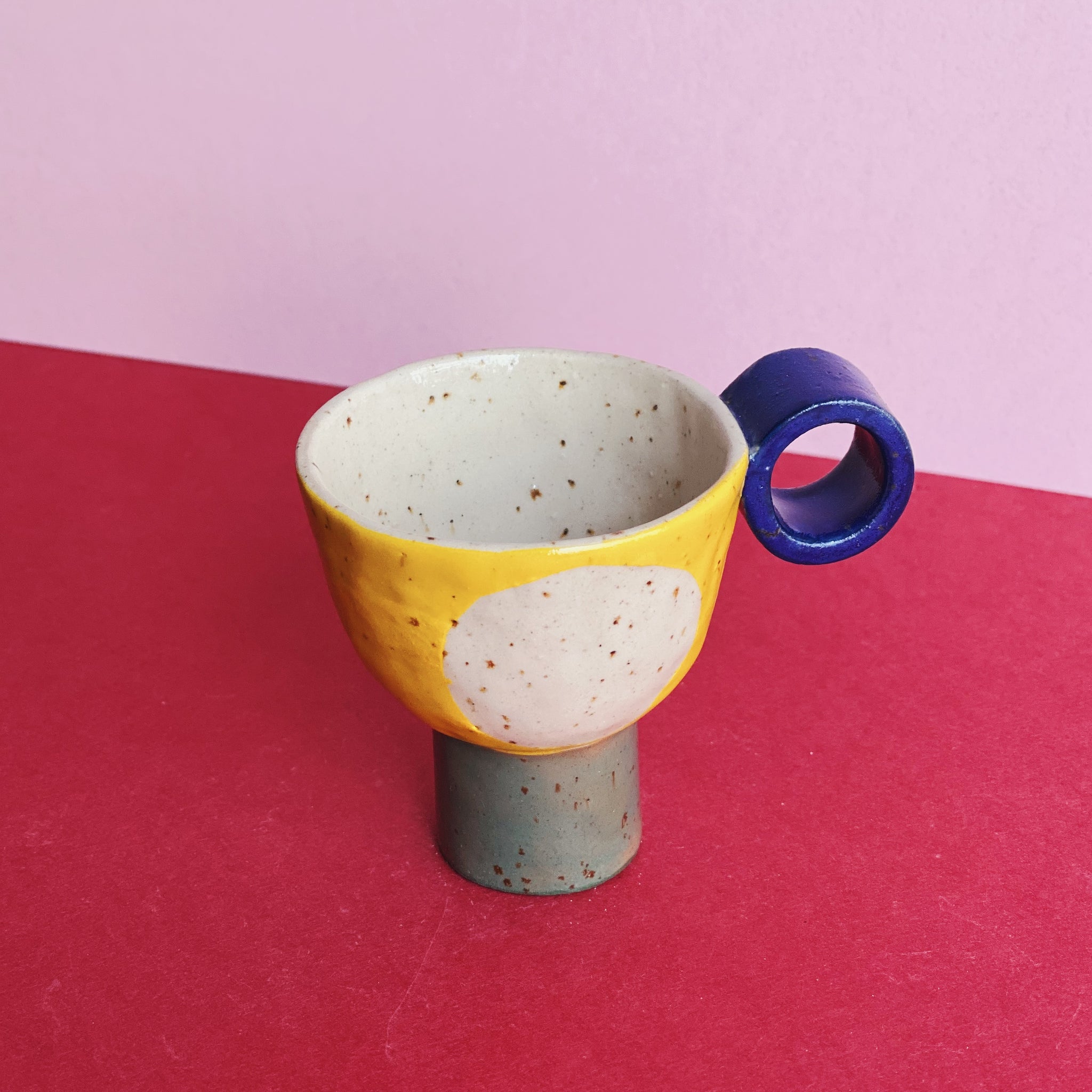 Tassen-Studie mit bunter Illustration und einem Finish aus klarer Glasur. Gebrannt bei 1240 Grad.