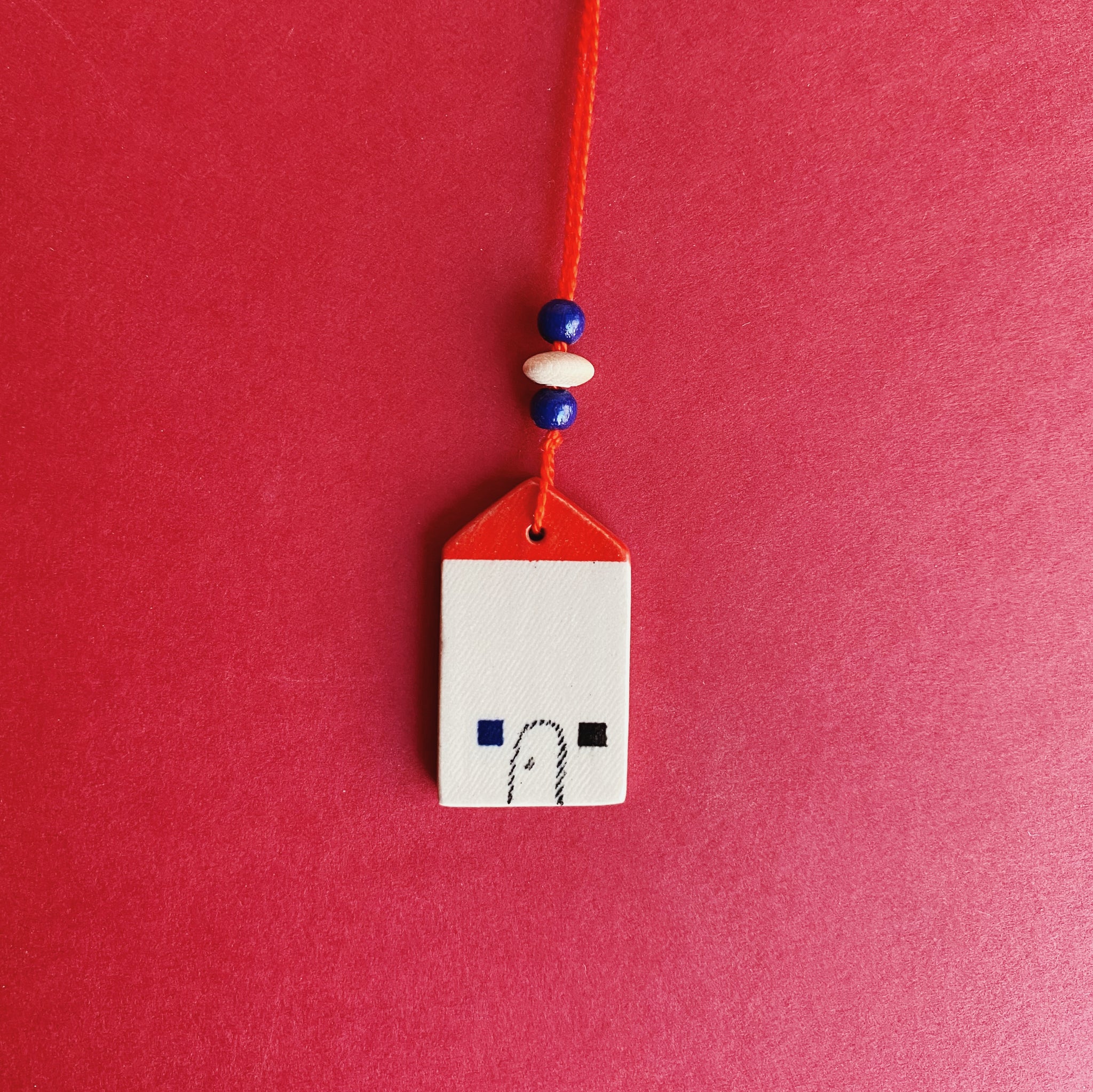 Ein kleines Unikat aus Keramik, illustriert und glasiert. Gebrannt bei 1240 Grad. Dieses Angebot beinhaltet einen Anhänger.