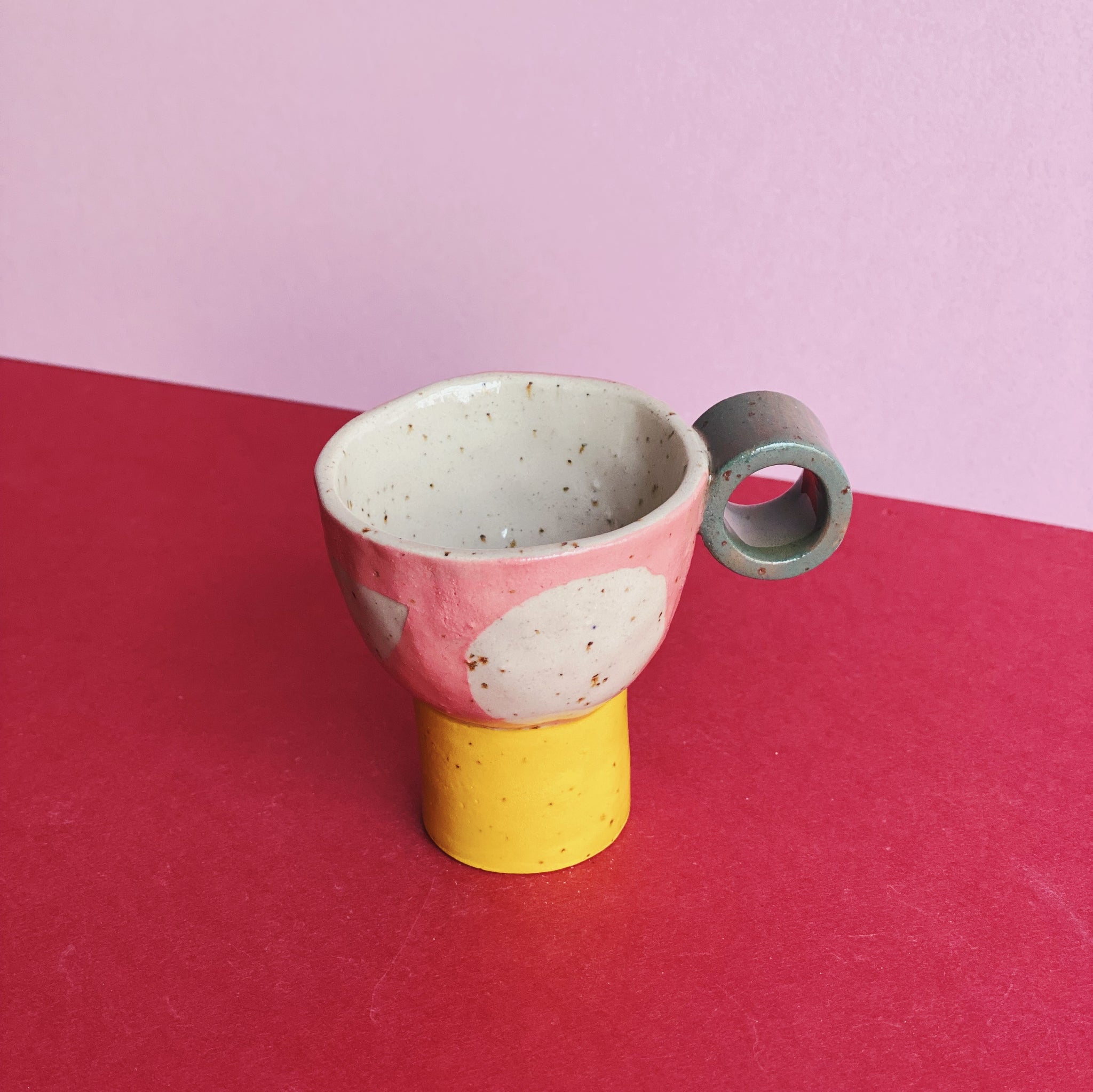 Tassen-Studie mit bunter Illustration und einem Finish aus klarer Glasur. Gebrannt bei 1240 Grad.